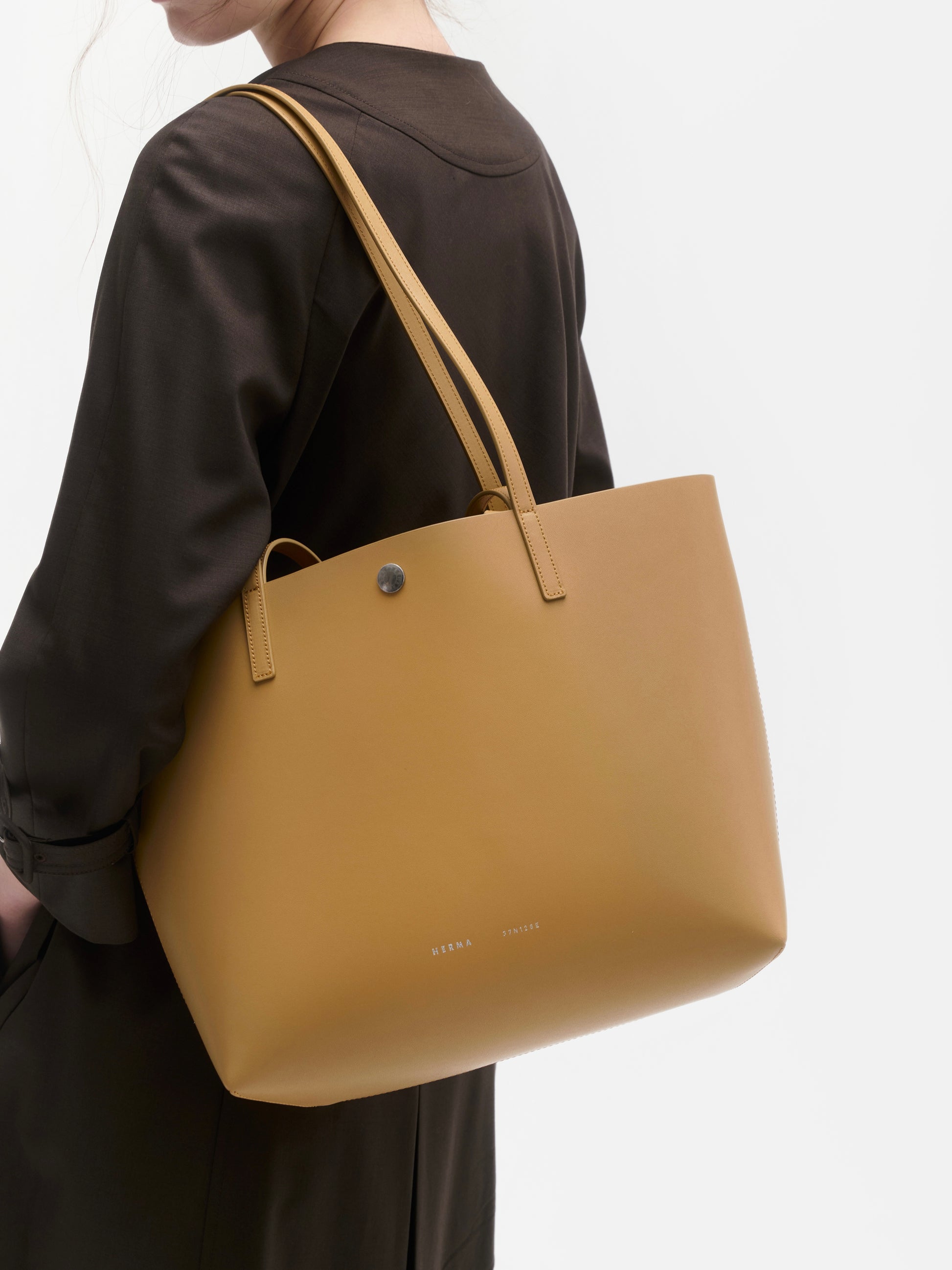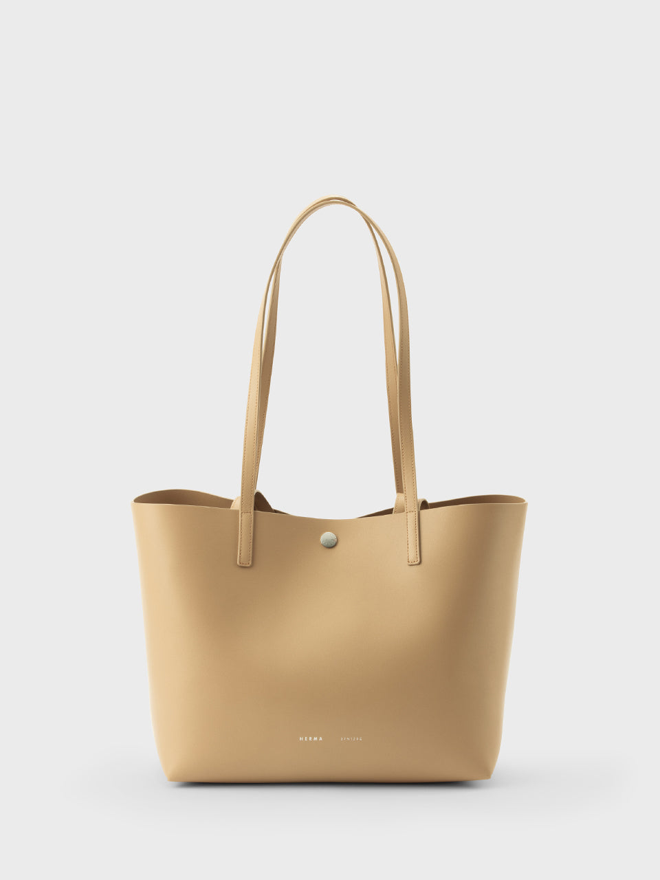 토트와 숄더의 두 가지 방식으로 사용할 수 있는 쇼퍼백으로, 여유 있는 수납력이 특징입니다. 심플한 실루엣과 미니멀한 디테일, 세련된 도트 클로저로 마무리했습니다. 가벼우면서도 실용적인 구조로 일상의 다양한 순간에 자연스럽게 어우러집니다.